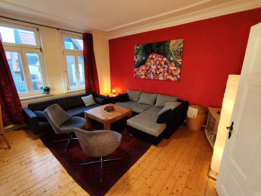 Willkommen in unserer großen Ferienwohnung! Unser Wohn- und Esszimmer laden Dich ein, Dich zu entspannen und das Zuhause-weg-von-Zuhause-Erlebnis zu genießen.